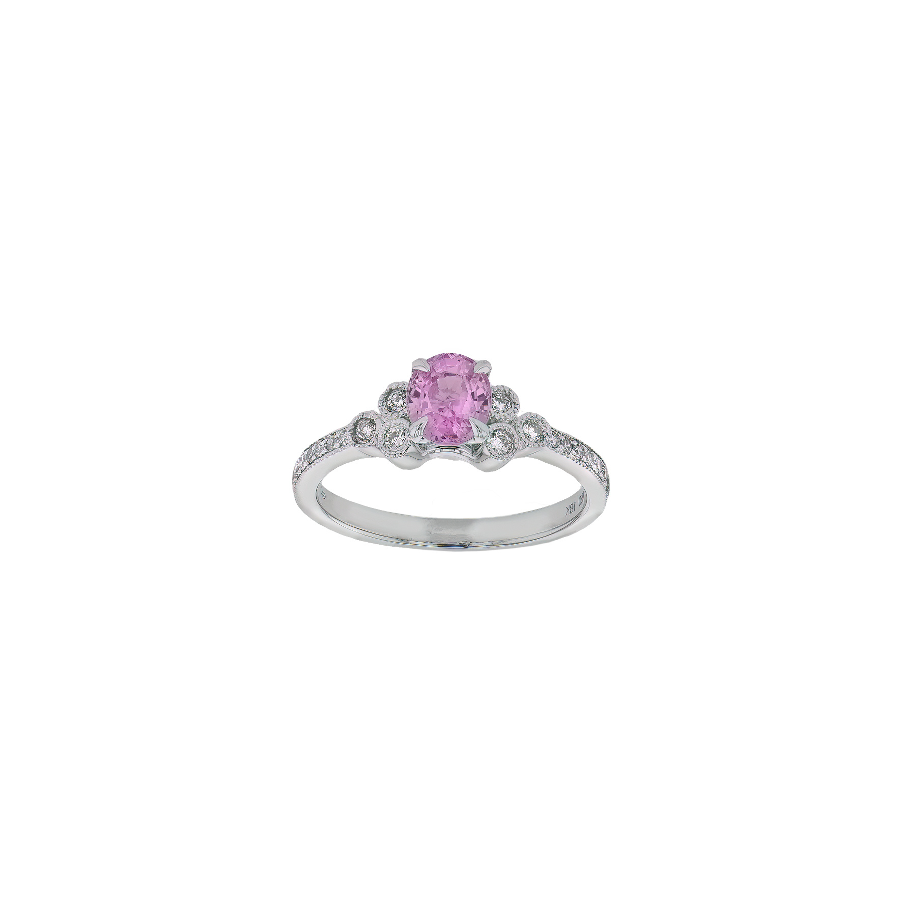 18K .90CT Pink Sapphire & Diamond Ring with 22D=.22ct
